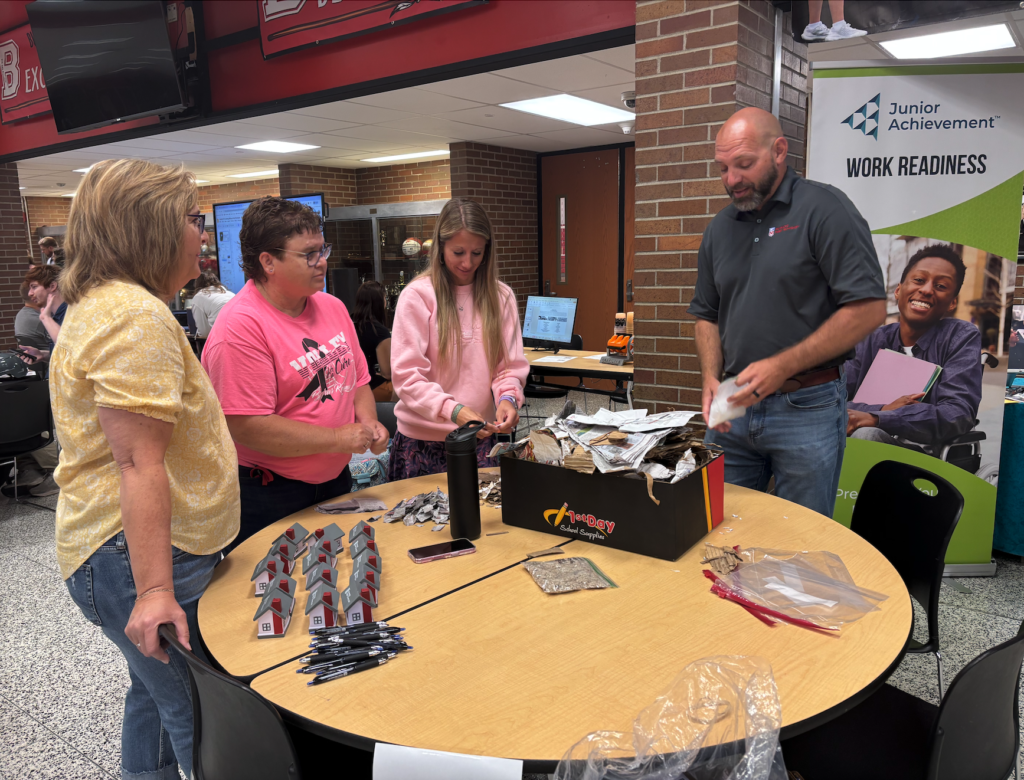 Following the discussion, teachers rotated through a Manufacturing and Technology Expo featuring nearly 30 interactive stations. Local employers, higher education institutions, and workforce partners led hands-on demonstrations showcasing electronics, robotics, fiber optics, drones, blueprint reading, quality checks, coding, logistics, and other skills essential to today’s industries.