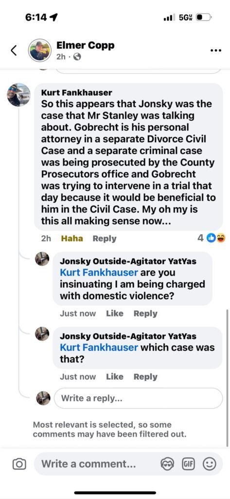 The disparity between Fankhauser’s version of events and the security footage underscores how selective framing can mislead the public. By portraying Van Hesteren as an outsider intent on disruption, and by linking him falsely to a domestic violence case, Fankhauser attempted to discredit a critic and undermine the city’s law director in the process.